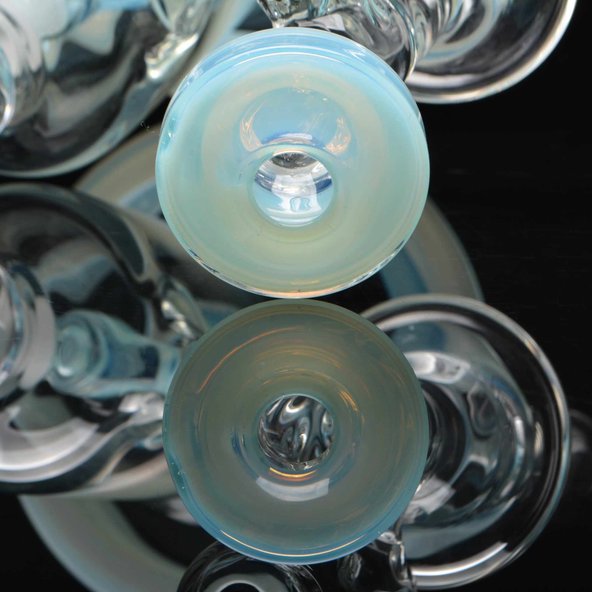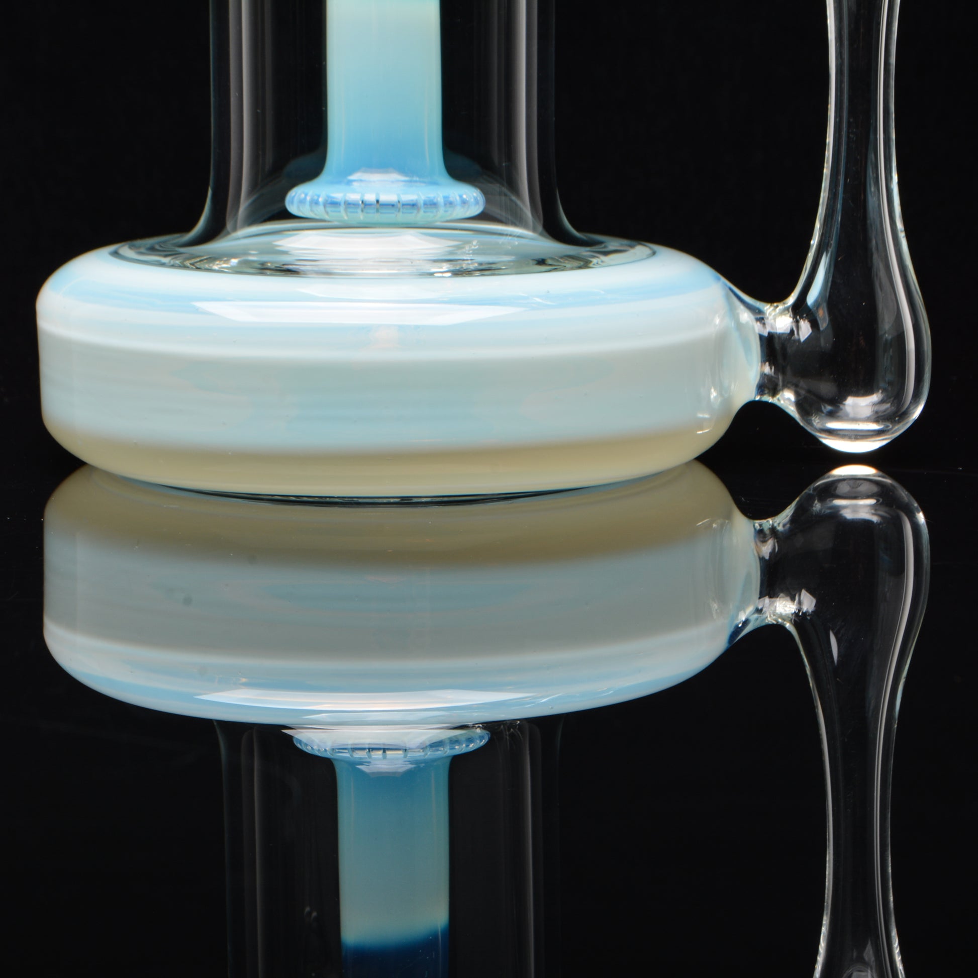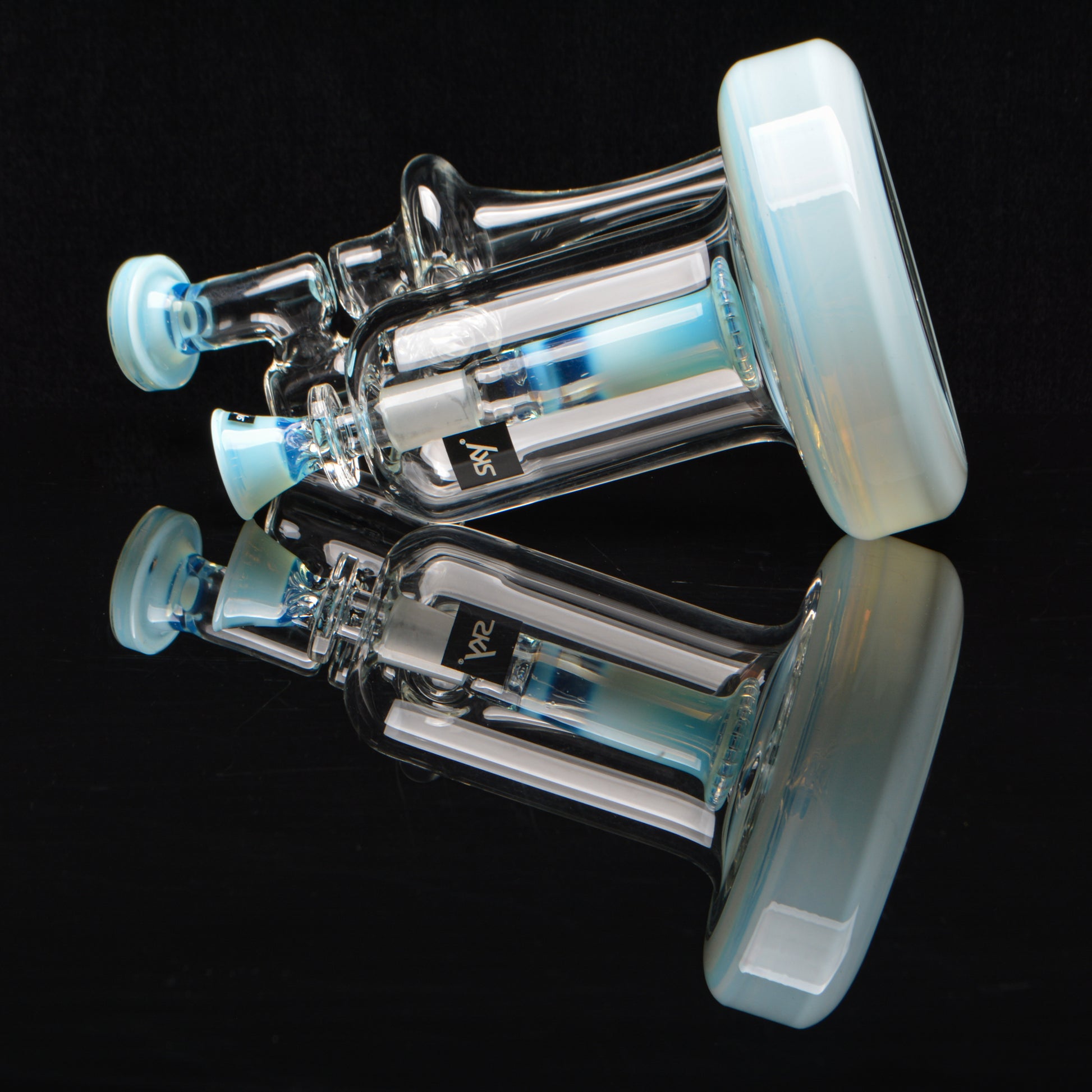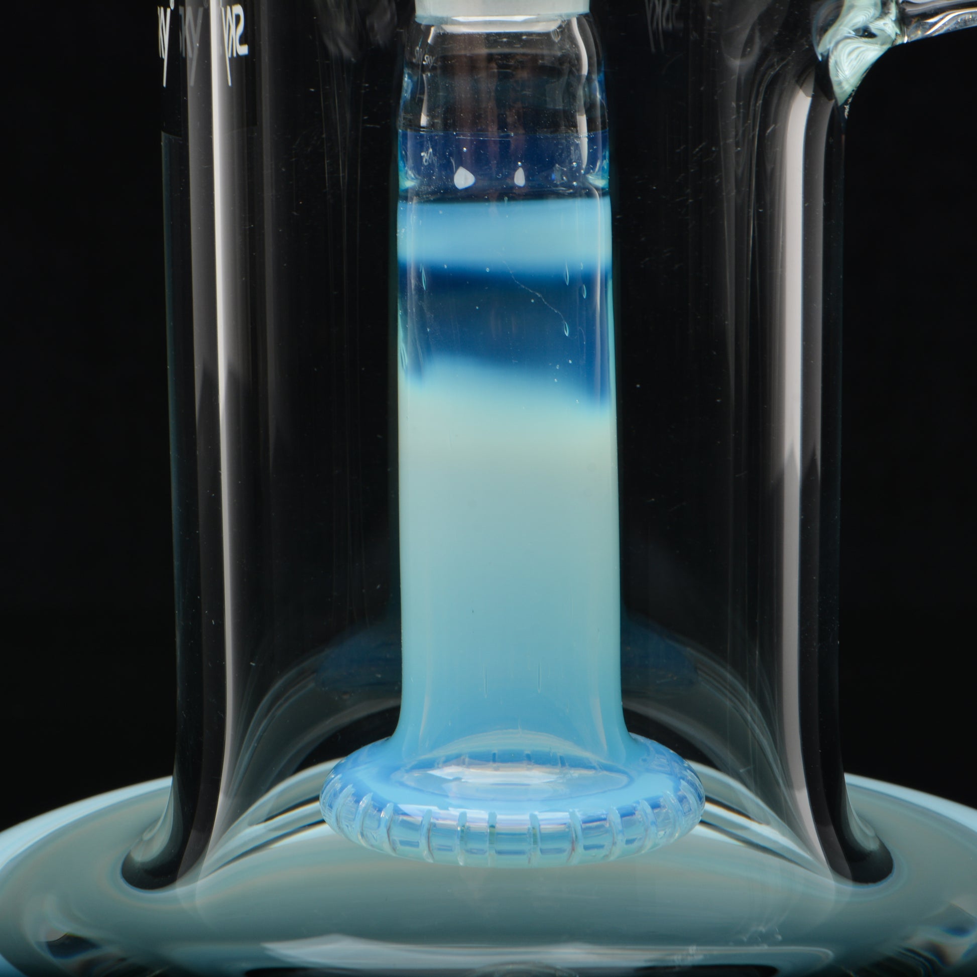 We just recently made this Neutron Recycler Accented in this amazing color called Hydro! Unfortunately after the piece cooled down we noticed a few marks on the mouthpiece. We polished these out, but the color changed slightly. Because of this issue we have decided to pas the saving onto you and heavily discounted this piece!