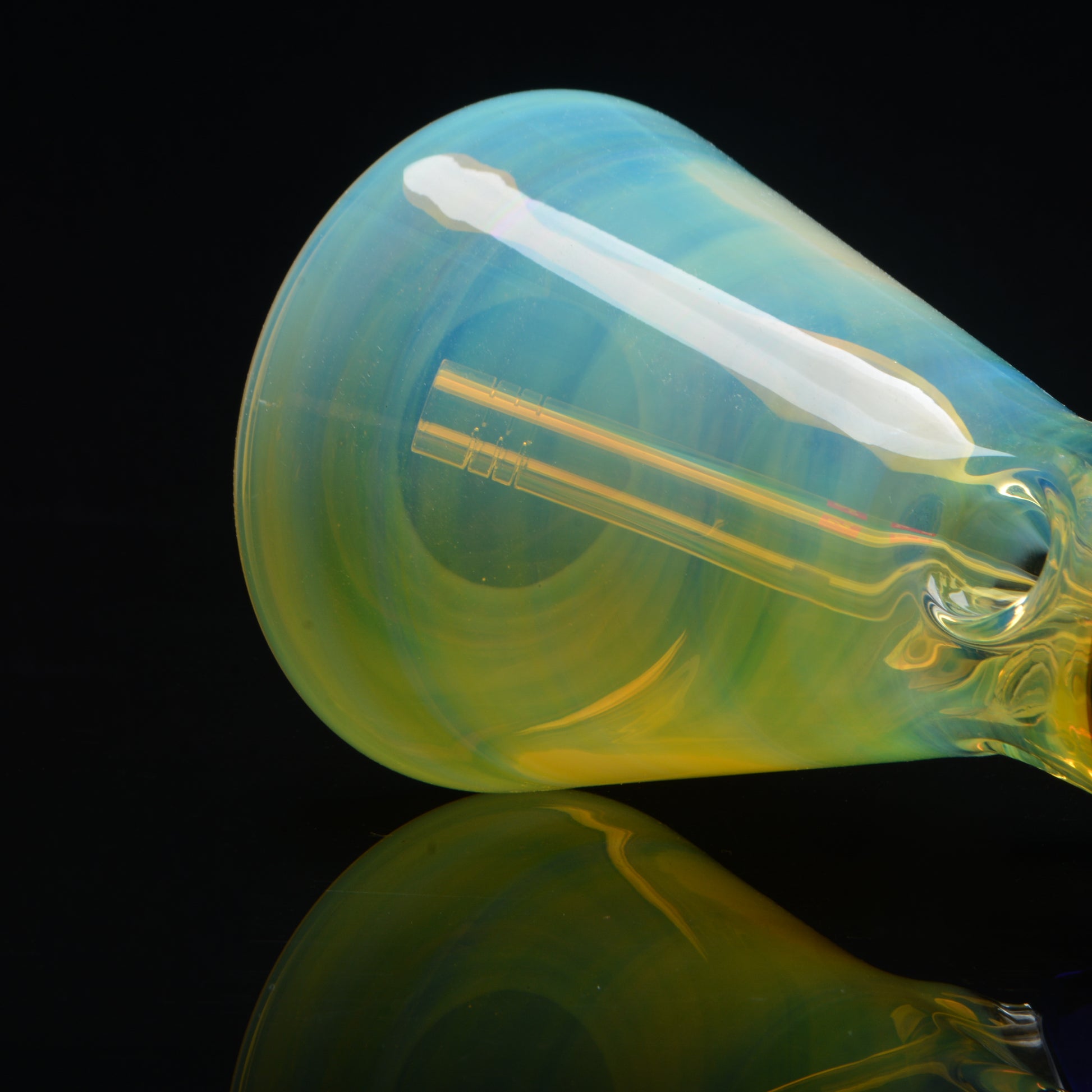 The results of silver fuming are somewhat random and will range from a dark blue to a light green! This means that each piece is a 1/1! We use the highest quality glass on the market, this is a piece your going to enjoy for years to come!
