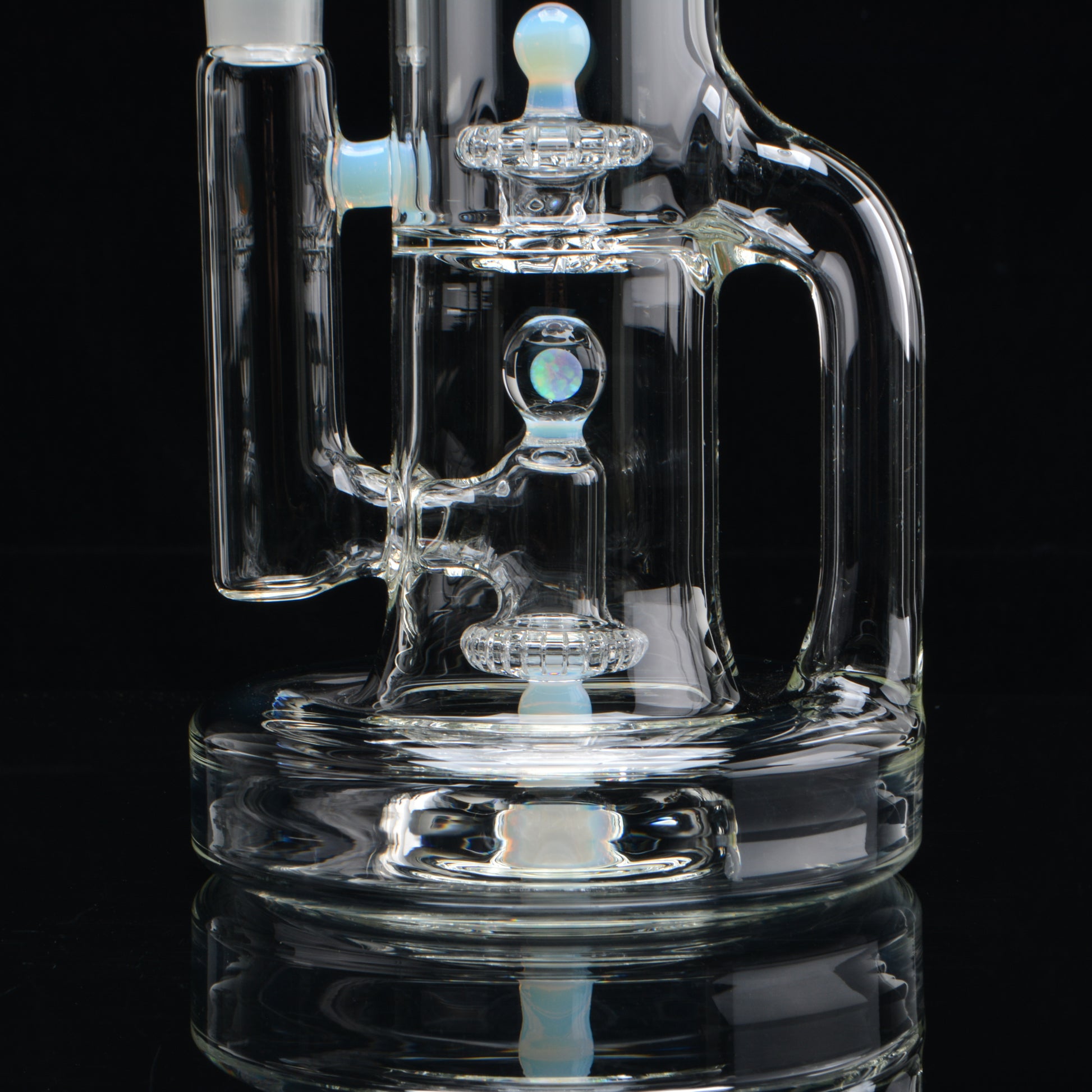 This has been an Epic Project we have been working on with our good friend Cell Hits! This piece a unique variation on our Skycycler tree cycler. Cell designed the piece for maximum bubble dumping action! By making the drain go straight down info the hollow foot base, we insure the piece is giving the smoothest hit possible! We are still working on variations of this piece , so this might not be the final design. If you have any questions feel free to reach out!